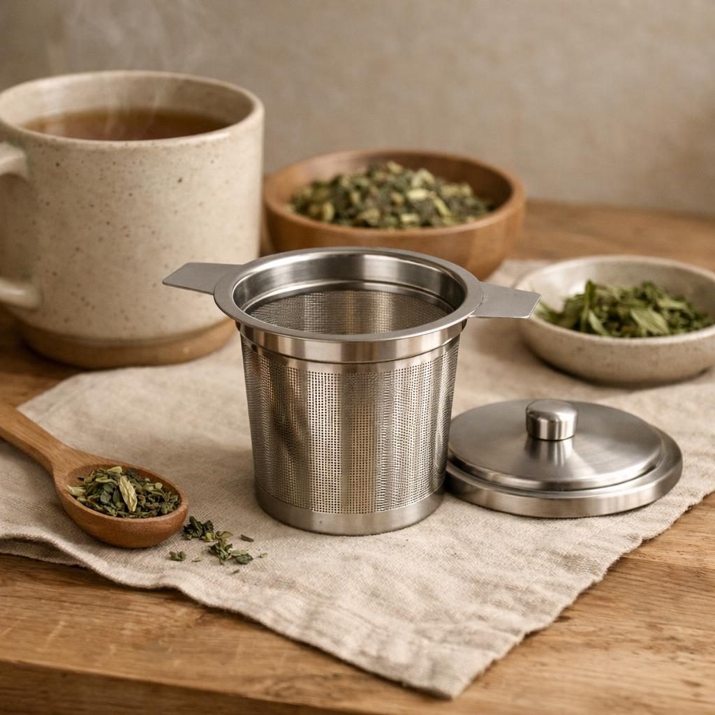 Bij hete thee vervangt een RVS theezeef zakjes met kunststofvezels of een plastic seal-laag.